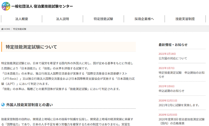 Bước2: Bấm chọn 特定技能試験