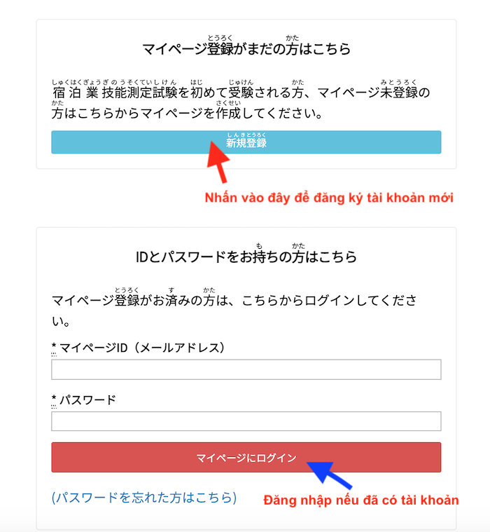Bước 5: Click chọn 新規登録 đối với các bạn lần đầu đăng nhập và chưa tạo tài khoản.