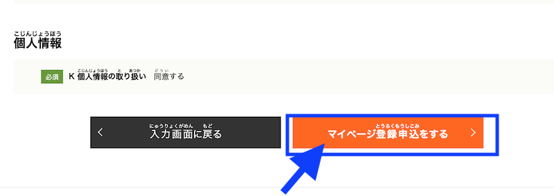 Sau khi xác nhận thông tin đã đúng, bạn chọn マイページ登録申込をする để hoàn thành thông tin đăng ký.