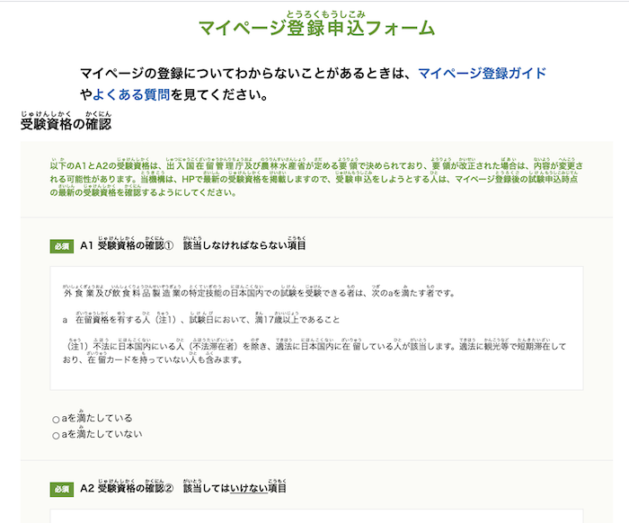Đặc biệt phải trả lời đầy đủ những mục có biểu tượng 必須 màu xanh lá như trong hình.