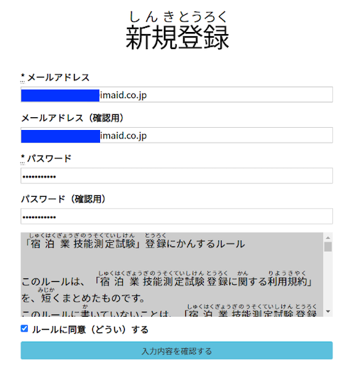 Bước 6: Điền thông tin địa chỉ email và password (mật khẩu), sau đó chọn 入力内容を確認する để kiểm tra lại thông tin đã nhập.