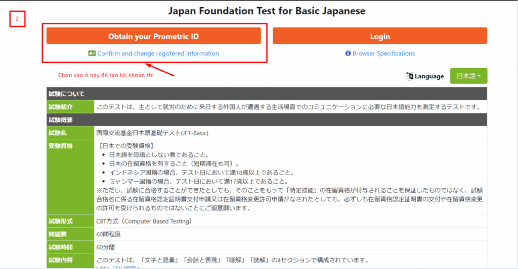Link đăng ký: http://ac.prometric-jp.com/testlist/jfe/index.html