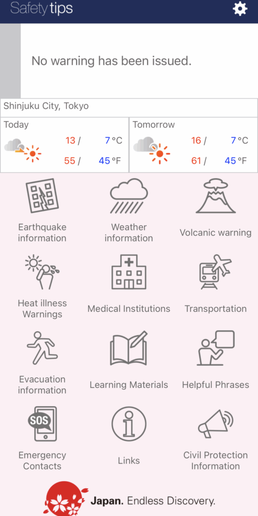 ・iOS(iPhone): App Storeで「Safety tips」を検索。観光庁が提供する公式アプリをインストール。