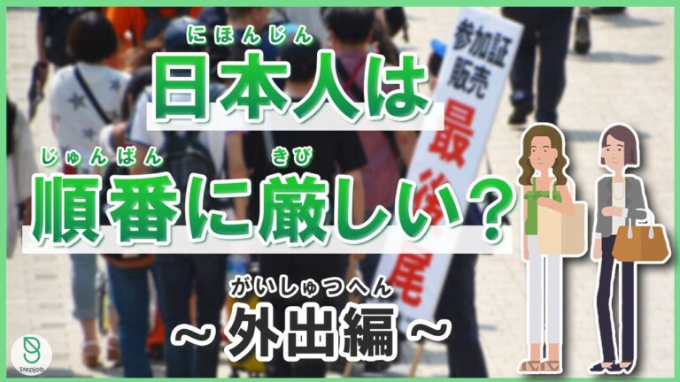 電車の乗り降りや、入店するときは名前を記載してから並ぶなど、日本のマナーについて学ぶ動画です。